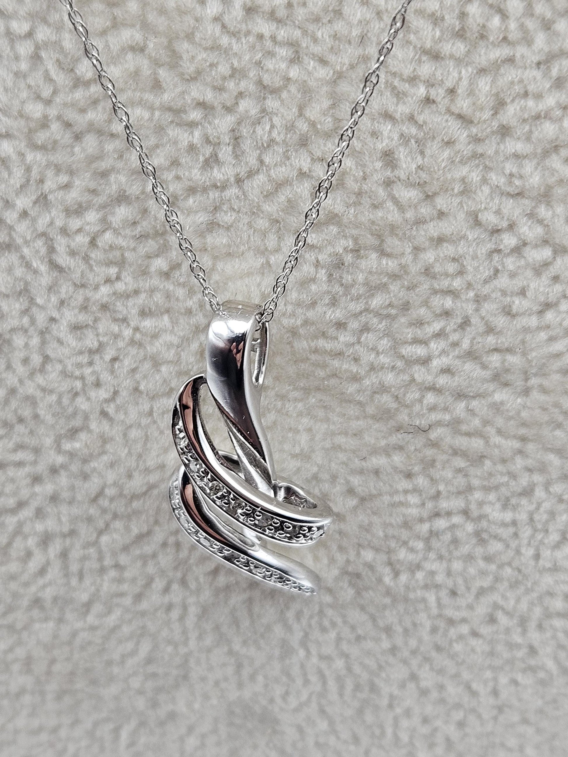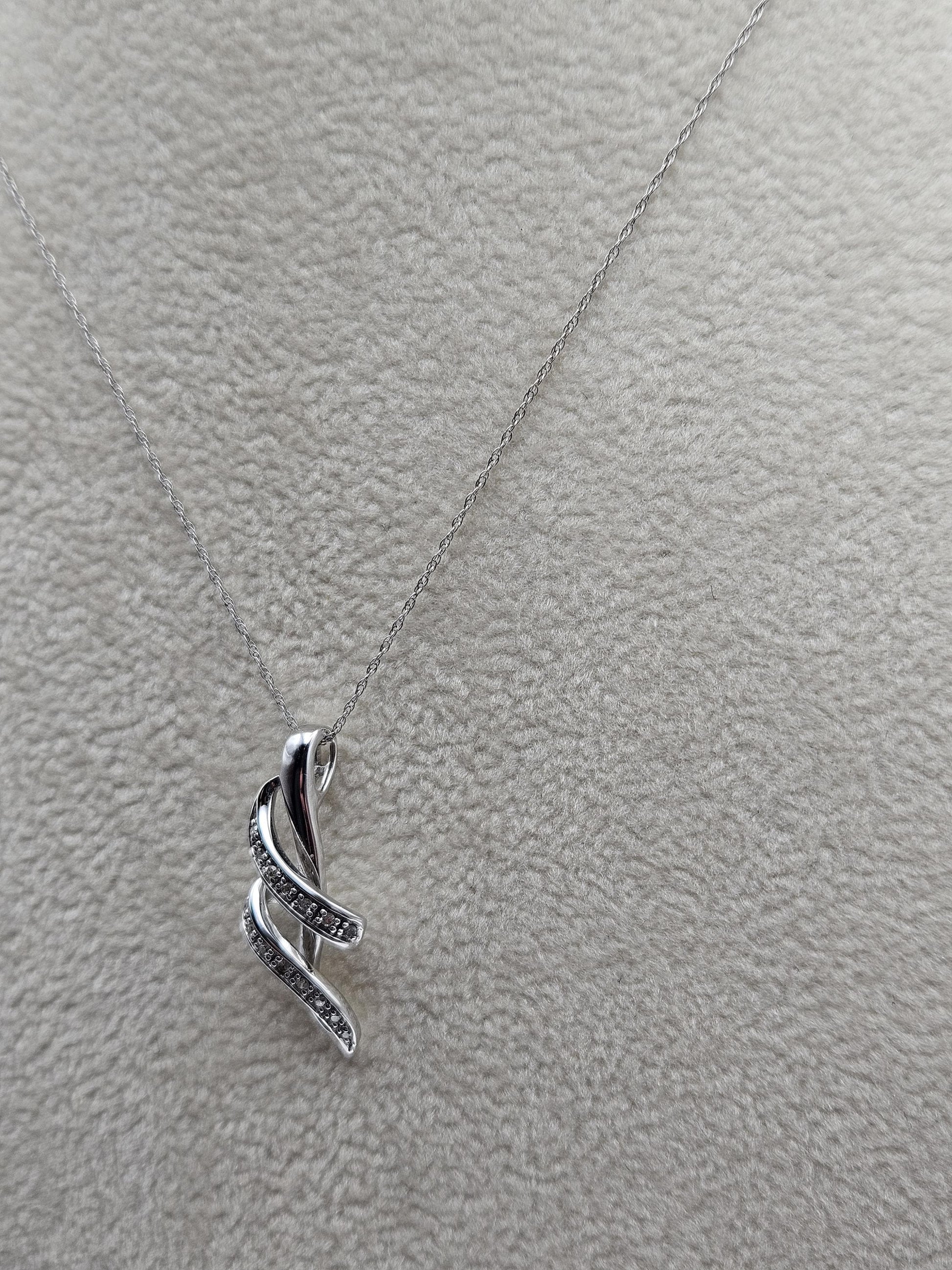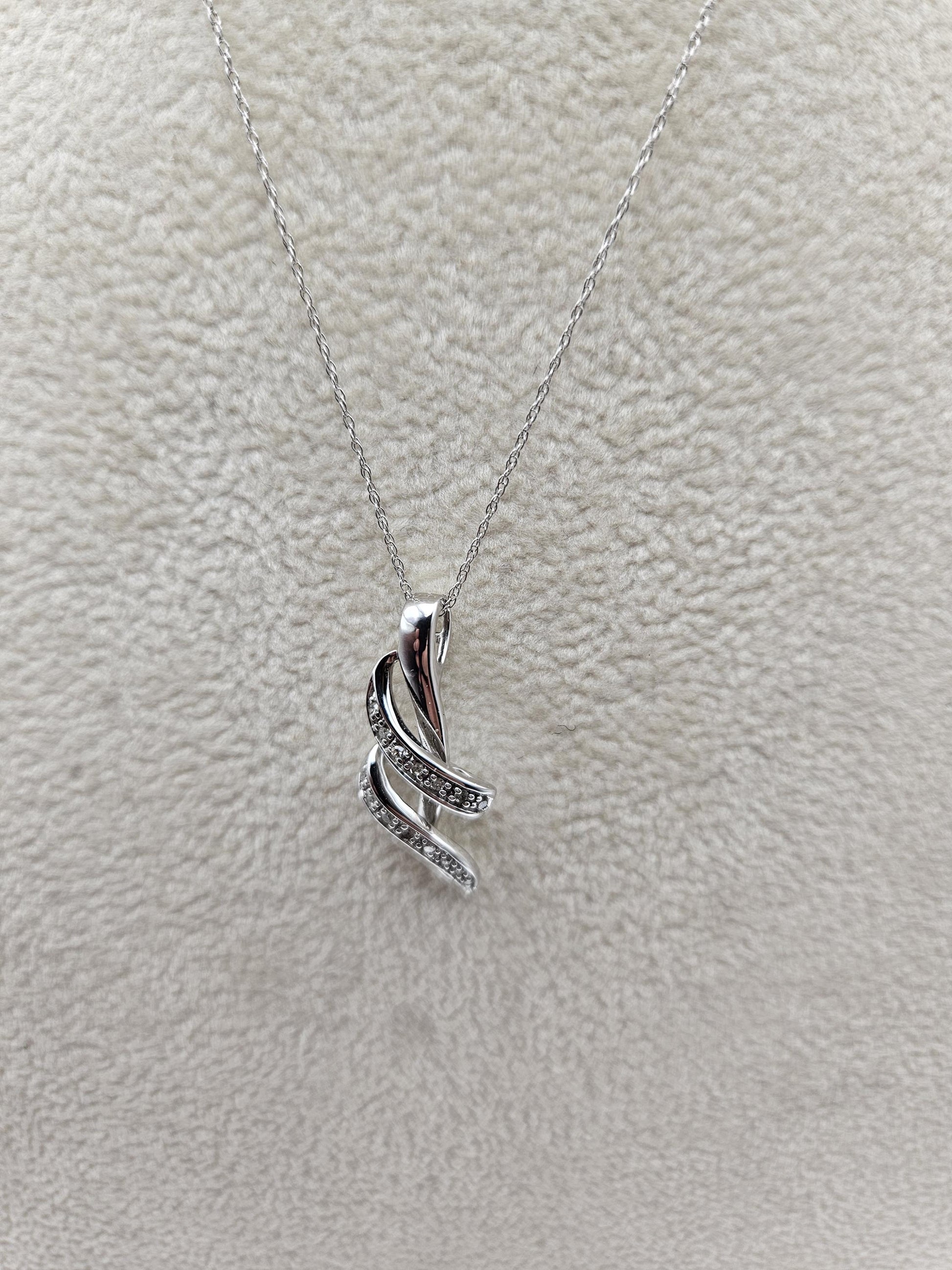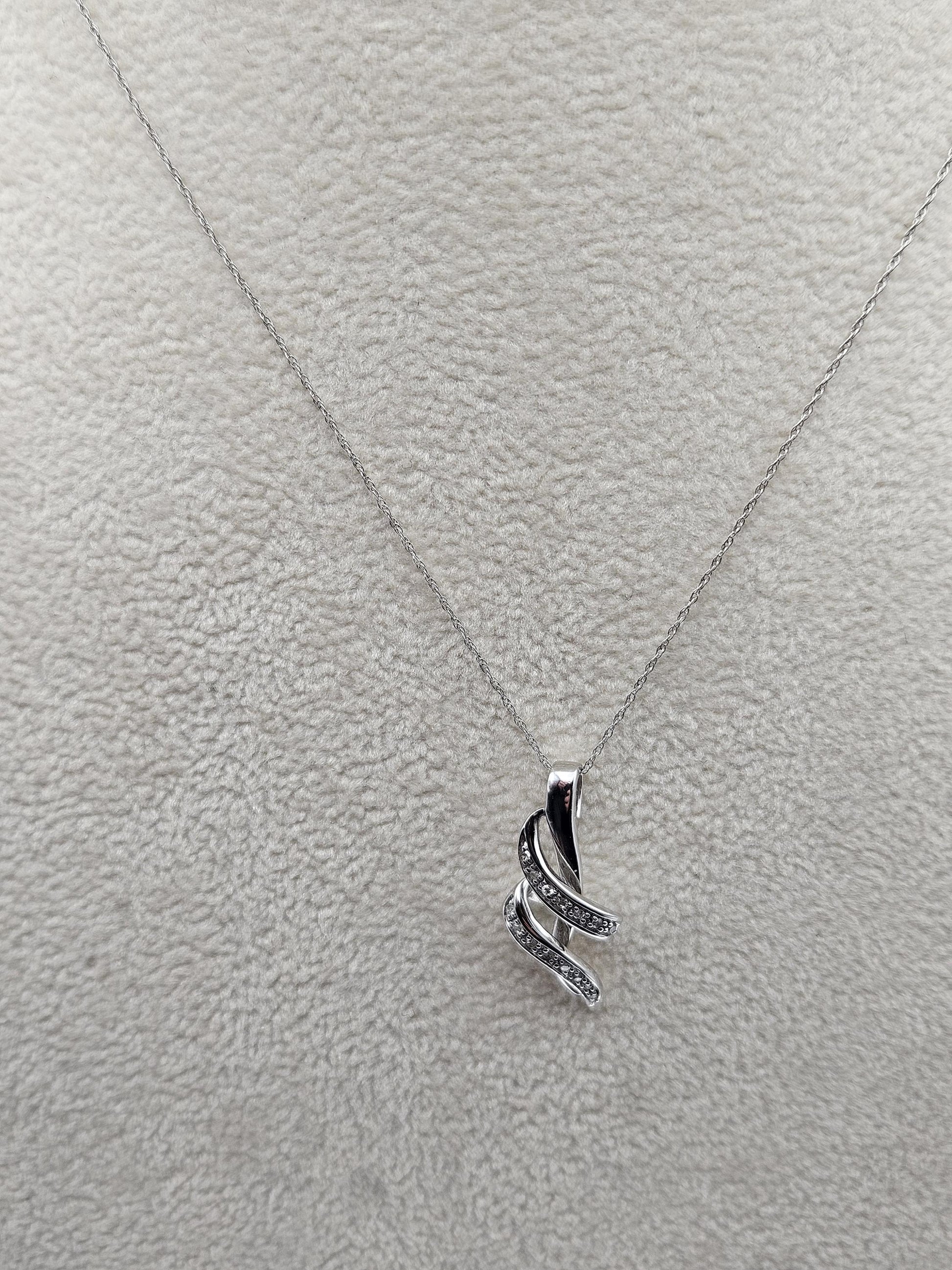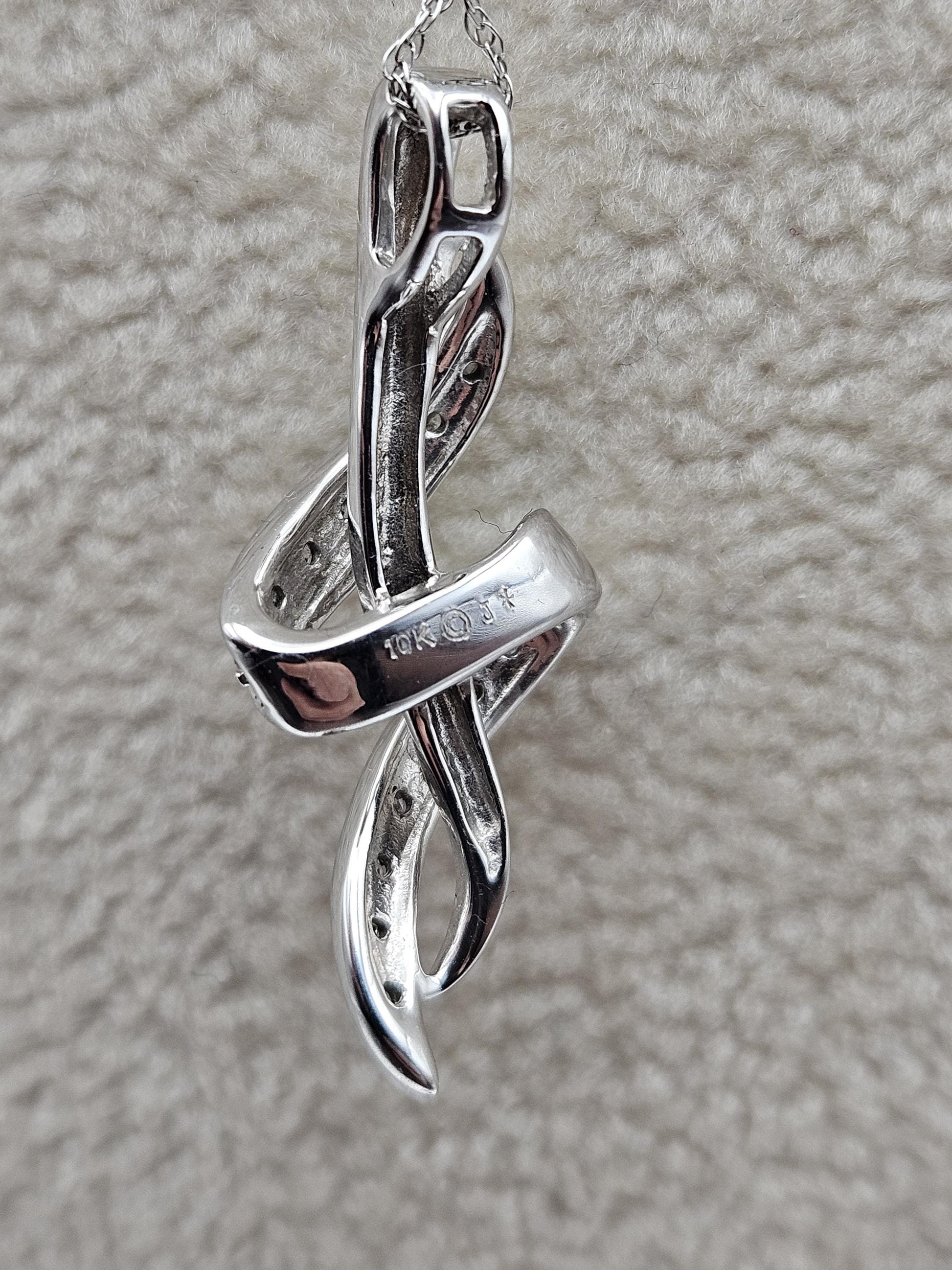 10k Necklace White Gold with Sparkling Intertwined Loop Pendant - White Gold Pendant in 18 inches Necklace - Modern Jewelry Gift for Her