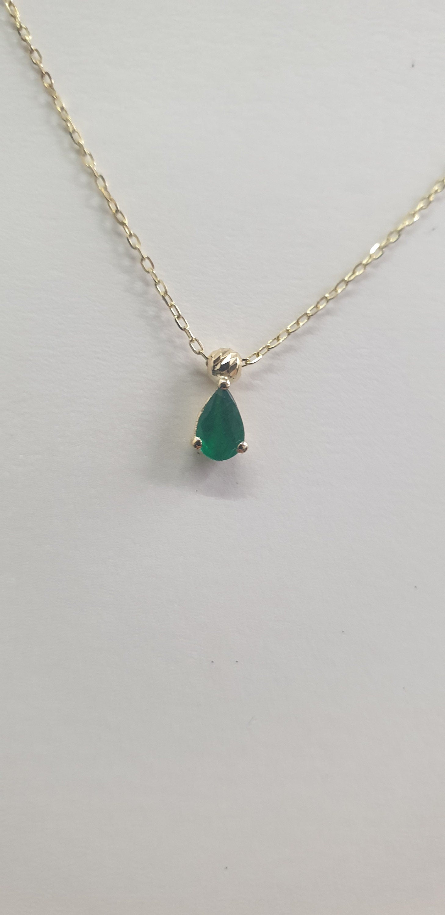 18k Gold Necklace Natural Emerald Pendant, 18K Solid Gold Necklace, Natural Emerald Pendant, Emerald stone, Genuine stones, Gift for her