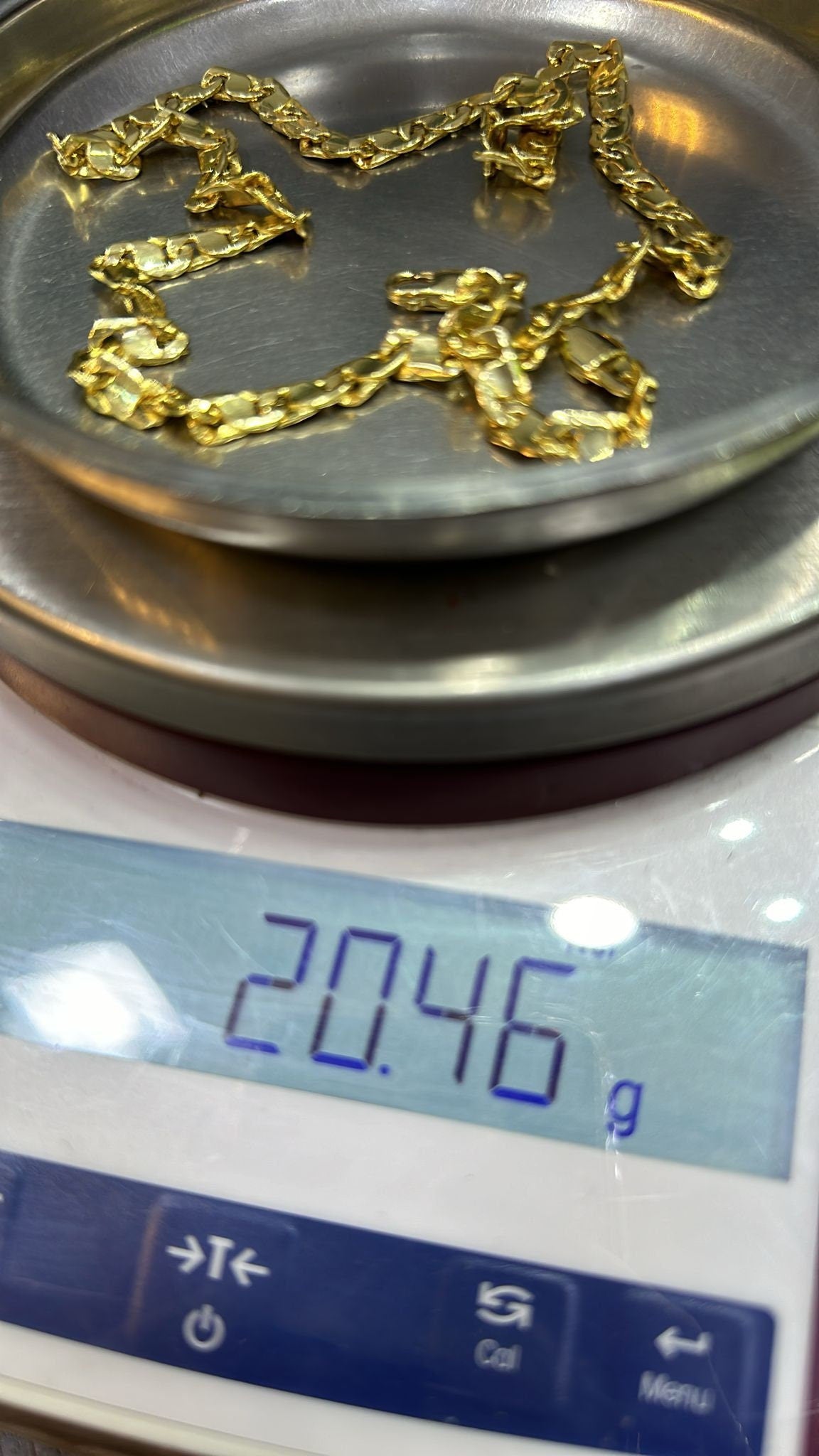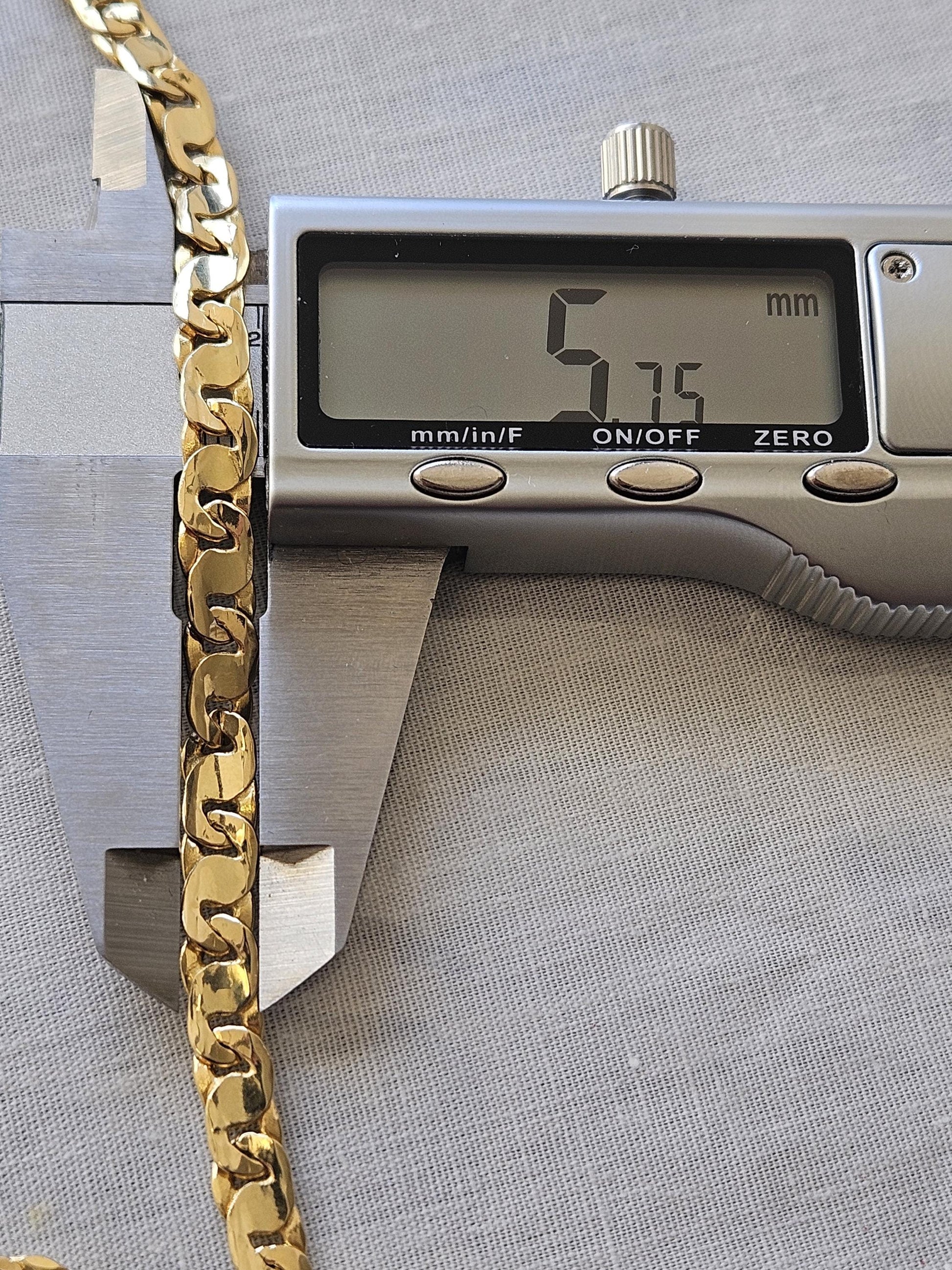 This 18k gold curb chain necklace is a timeless accessory for any occasion. This gold chain necklace features a sturdy lobster claw closure and adjustable length for versatility. The thick design exudes elegance, making this real gold chain the perfect gift for your wife.