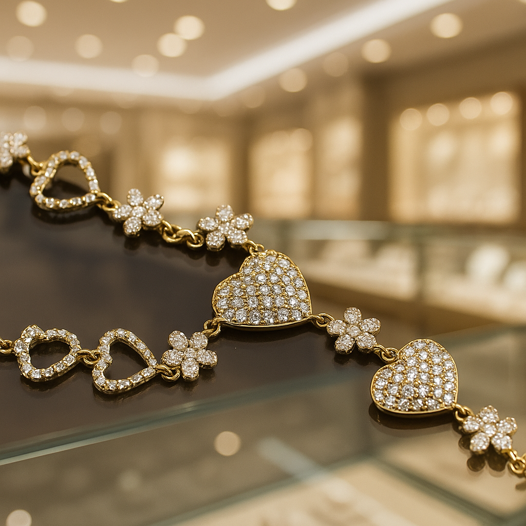 The whole necklace is made of 18k solid gold with the 18k or 750 mark on the prove of authenticity.