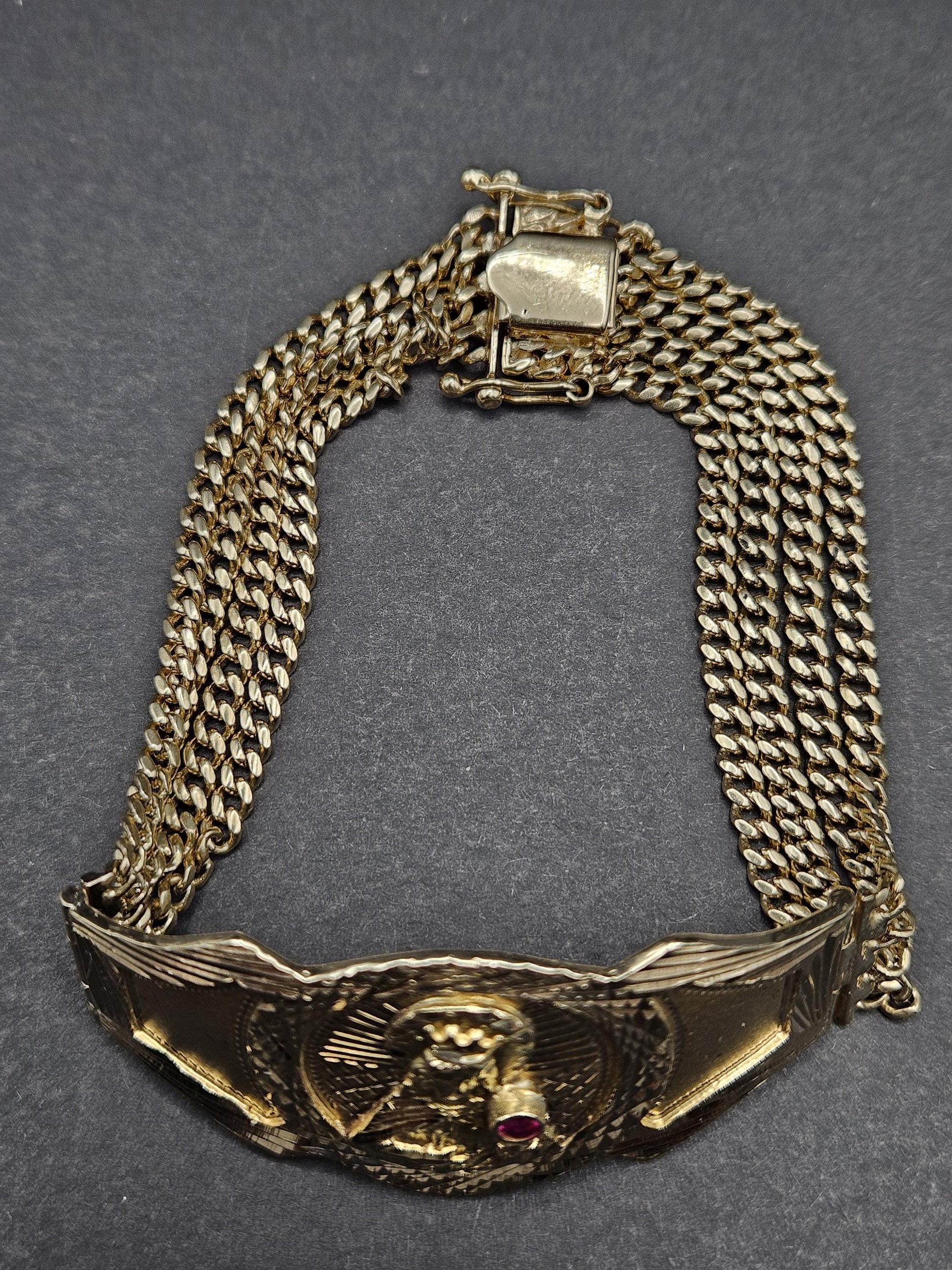 **Vintage 14K Gold Bracelet - 43.5 Grams - Red Gemstone Medallion - Elegant Statement Jewelry**