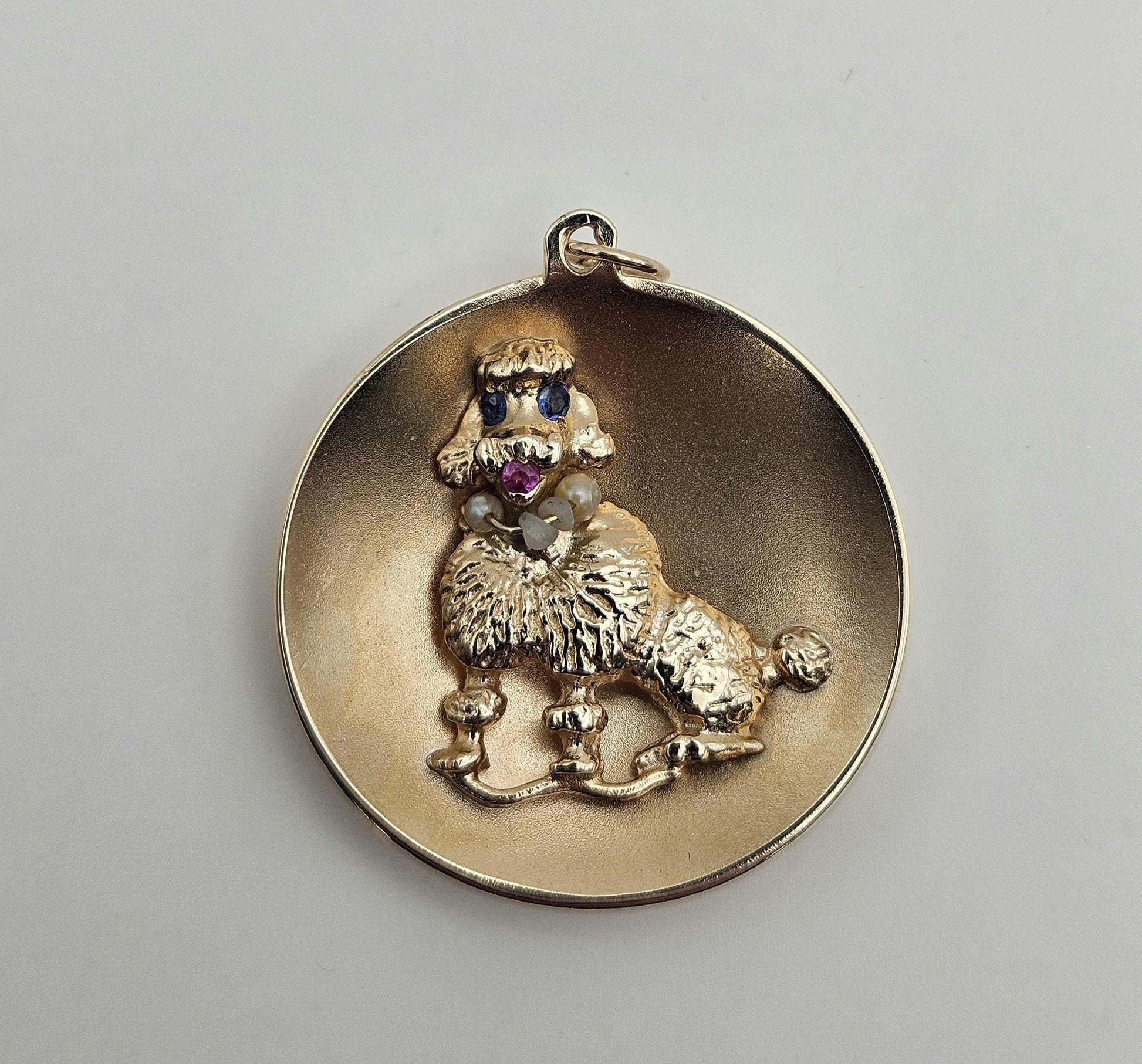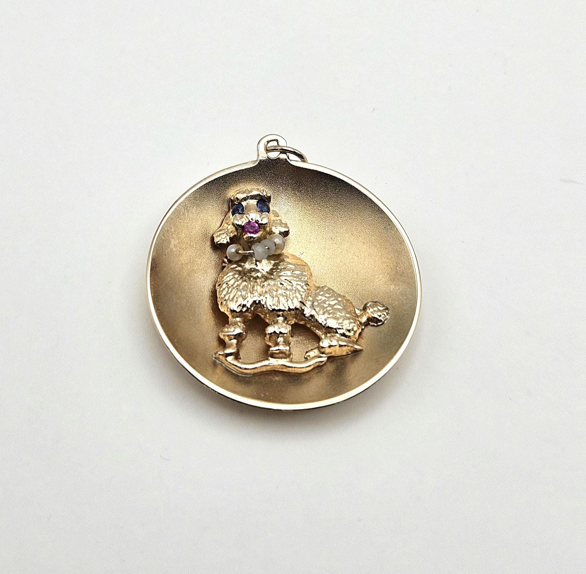 Vintage 14k Gold Poodle Charm Pendant: Ruby, Sapphire, Pearl Necklace